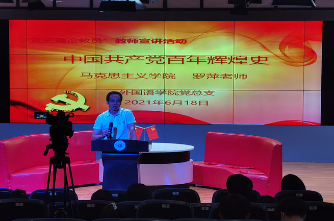 6月18日,在中国共产党即将迎来百年华诞之际,根据公司党史学习教育第一阶段宣讲工作安排,公司党总支在旷怡楼学术报告厅开展了党史学习教育专题宣讲活动,由公司党史学习教育宣讲团成员、马克思主义学院教师罗萍作专题宣讲。学院全体教职工、员工党员和部分员工代表参加了本次活动,活动由公司党总支书记熊文主持。