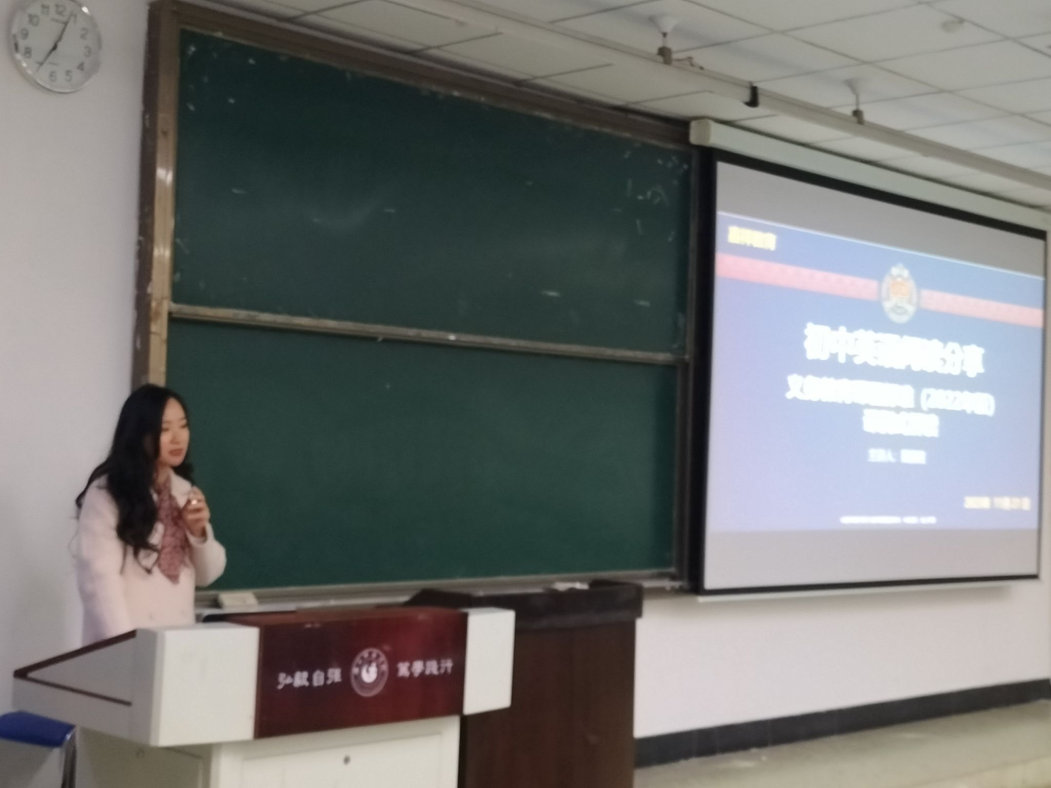 本网讯(文、图/苏相君)2023年11月21日晚,乐山嘉祥外国语学校粟潇筱老师受邀在行知楼125教室为2023级英语专业全年级同学作了题为“初中英语课程的育人功能”的专题报告。